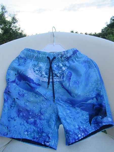 Jako nové! Dětské plážové kraťasy, plavkové šortky pro kluky 7-8 let, vnitřní síťované slipy. VYPRÁNO