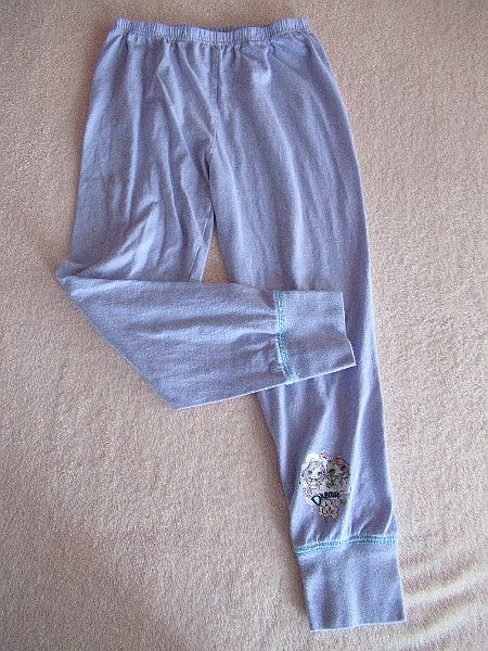 Holčičí světle fialové kalhoty na spaní, domácí tenké tepláky ve velikosti 140 pro slečny 9-10 let, dole s obrázkem